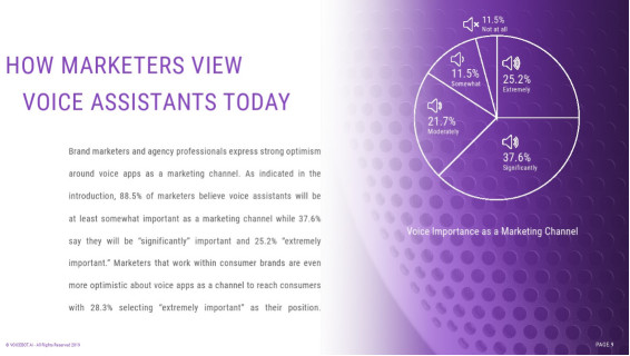根據(jù)Voicebot.ai最新發(fā)布的《2019年語音助手SEO報告》和《2019年語音助手營銷渠道報告》顯示,58.6%的美國成年網民使用語音搜索,87%的市場營銷人員認為在智能手機上擁有語音應用將極其重要或非常重要。