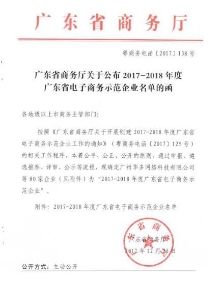 近日,廣東省商務(wù)廳公布了2017-2018年度廣東省電子商務(wù)示范企業(yè),本次評(píng)定是通過企業(yè)申報(bào),地市級(jí)商務(wù)主管部門推薦,省商務(wù)廳組織業(yè)內(nèi)專家評(píng)審,并對(duì)入選企業(yè)予以公示。國(guó)內(nèi)知名電商企業(yè)萬表榮獲“2017-2018年度廣東省電子商務(wù)示范企業(yè)”稱號(hào)。