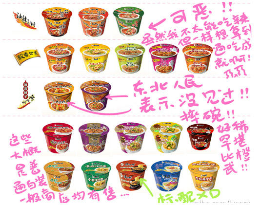▲熱心網(wǎng)友總結(jié)的康師傅泡面口味