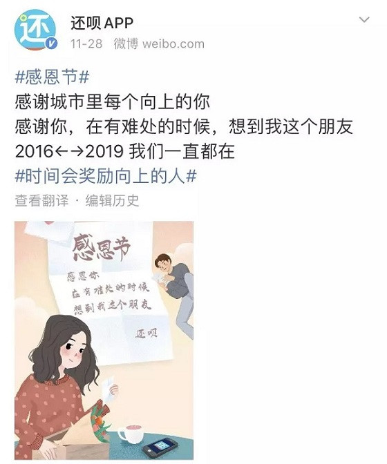 新年將至,還唄這次不借IP、不請(qǐng)明星、不玩流量、只講真心的走心傳播,一定會(huì)在用戶(hù)心里留下暖暖的痕跡,為他們注入一股向上的力量,瀟灑地?fù)]別2019年,勇敢地走向2020年。我們也十分期待,還唄下一次還將以一腔熱忱和向上的心,在傳播上繼續(xù)突破出新,為用戶(hù)帶來(lái)能量和希望。