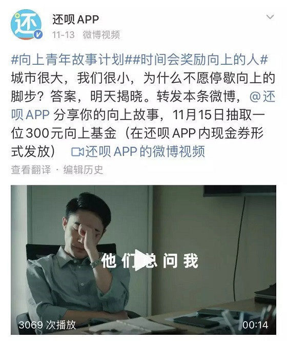 其次,在還唄三周年之際圍繞 #還你輕松# 進(jìn)行事件營(yíng)銷(xiāo),向用戶(hù)傳遞還唄產(chǎn)品和理念雙重升級(jí)的心智,大范圍提升還唄的品牌聲量和認(rèn)知度。