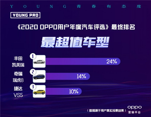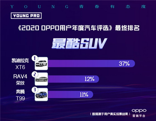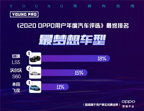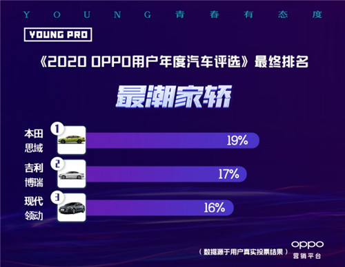 基于此背景,OPPO營銷平臺發(fā)起“YOUNG青春、有態(tài)度——2020 OPPO用戶年度汽車評選”活動。本次汽車評選共設置九大獎項,分別為:最潮家轎、最酷SUV、最全能車型、最夢想車型、最智能車型、最超值車型、最看好的新能源品牌、最有魅力豪華品牌、最信賴的燃油車品牌。