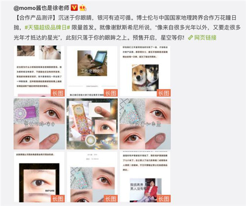 此次天貓超級(jí)品牌日,博士倫萬(wàn)花瞳日拋星空系列產(chǎn)品于天貓首發(fā)。這款新品由中國(guó)國(guó)家地理官方授權(quán)星空?qǐng)D鑒,擷取了NGC 224仙女座星系作為靈感,屬于官方背書級(jí)別的“宇宙瞳款”。產(chǎn)品設(shè)計(jì)上選用了業(yè)界首款不規(guī)則花紋,兼具設(shè)計(jì)感與實(shí)用性。在推廣階段,品牌聯(lián)合中國(guó)國(guó)家地理,在官方微博、微信平臺(tái)同步推出概念大片,講述追星者的動(dòng)人故事,演繹星空藍(lán)、星空棕、星空金棕三款新品靈感。