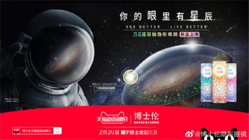 2月24日,百年品牌博士倫攜手全網(wǎng)第一營(yíng)銷IP天貓超級(jí)品牌日,以“你的眼里有星辰”為品牌超級(jí)精神,正式開啟隱形眼鏡行業(yè)的首個(gè)天貓超級(jí)品牌日。此次博士倫攜手天貓超級(jí)品牌日,通過一系列精心設(shè)計(jì)的玩法與創(chuàng)新的營(yíng)銷方式,共同拉開博士倫品牌的開年狂歡序幕。