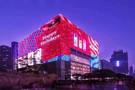 燈飾畫覆蓋了商場外立面墻體,讓所有原本行色匆匆的人都不禁駐足抬頭仰望,不知不覺中,就被深深地“安利”了。