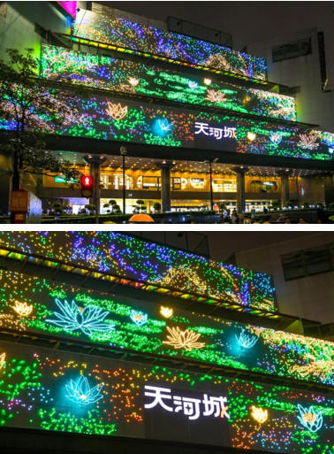 夜景換裝秀!夜空彩虹為天河城打造最美藝術(shù)燈畫