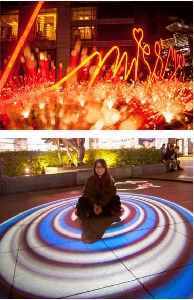 南門“彩虹階梯”互動(dòng)感應(yīng)裝置能捕捉到人的動(dòng)作,相應(yīng)會(huì)出現(xiàn)燈光的變化,每踩一步 、階梯都會(huì)發(fā)出不同顏色的光,一種顏色代表了一種心情。
