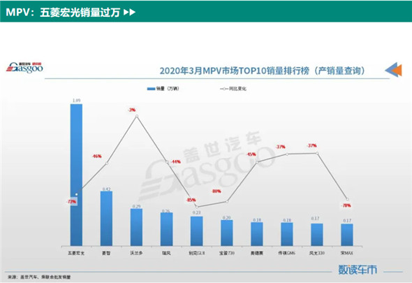 MPV前十車型同比全部下跌,五菱宏光雖同比下跌73%,但仍居MPV榜首,且是MPV中唯一銷量超過一萬輛的車,占整體MPV市場(chǎng)的24%。3月沃蘭多排名提升至第三,也是前十車型中跌幅最小的車。