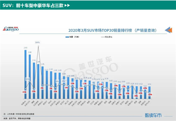 2020年3月份SUV市場(chǎng)銷量實(shí)現(xiàn)47.9萬輛,同比下跌43.3%。1-3月SUV市場(chǎng)累計(jì)銷量達(dá)137.3萬輛,累計(jì)同比下跌39.7%。