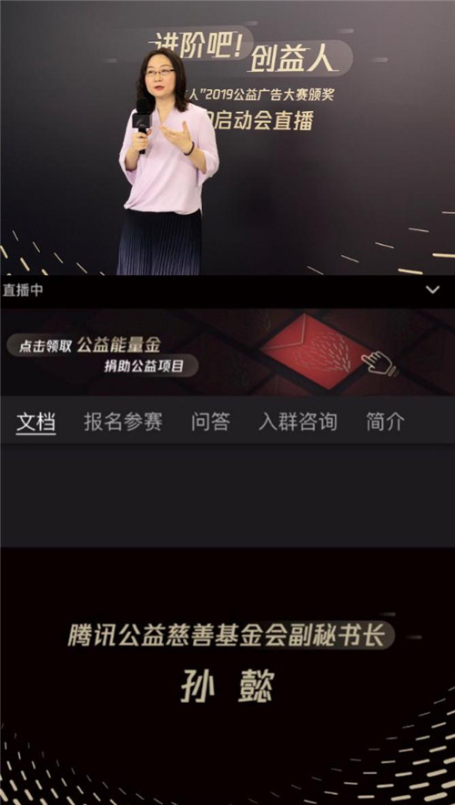 騰訊公益慈善基金會(huì)副秘書長孫懿在直播儀式上致辭,表達(dá)了對(duì)新一屆大賽的期許,“如果說‘99公益日’是一場(chǎng)全民做好事的直接行動(dòng),那走至第四個(gè)年頭的‘我是創(chuàng)益人’則是一場(chǎng)全民見證下的以創(chuàng)意為基石的共創(chuàng)‘馬拉松’。在新一屆大賽中,我們?nèi)詫?jiān)持以善意為起點(diǎn),繼續(xù)以大賽為平臺(tái),用更加深入、全面地助力實(shí)現(xiàn)更多社會(huì)角色所參與的善舉共創(chuàng)?!?/span>