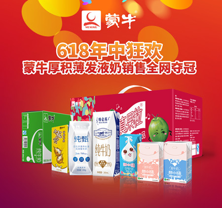 618全民年中購物節(jié)當天,蒙牛液奶銷售全網奪冠,斬獲三位數(shù)增長,獲得蒙牛京東自營旗艦店、天貓蒙牛官方旗艦店、蘇寧蒙牛官方旗艦店乳制品類目第一的佳績。