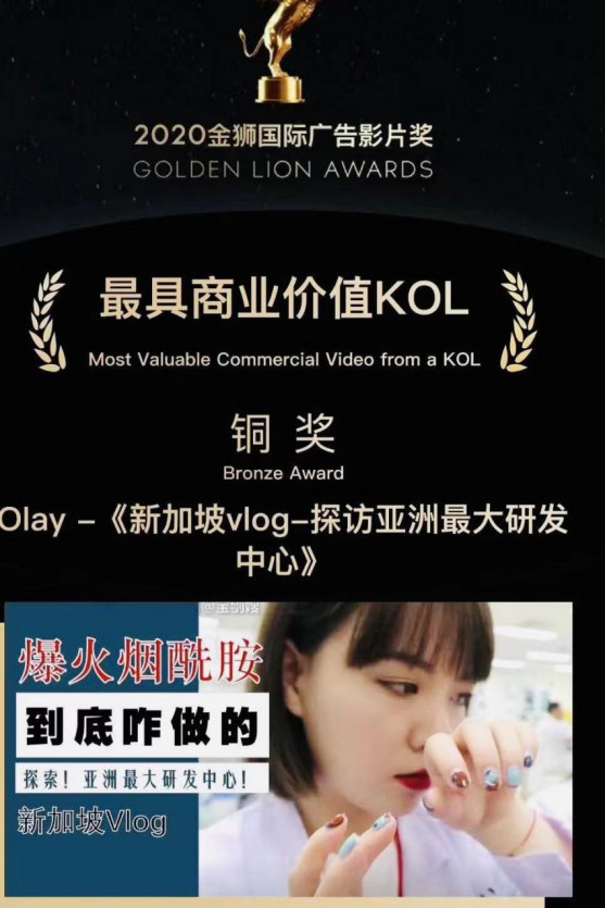 寶潔—《新加坡Vlog-探訪亞洲最大的研發(fā)中心》這個作品是寶劍嫂在2019年5月28日發(fā)布在微博上的,這也是她首次出國參加線下品牌活動。這個作品能獲得評委的認可,寶劍嫂自己也沒有想到,她說:“當時是第一次出國參加品牌的線下活動,參觀了寶潔在亞洲最大的科研中心,那時候就覺得自己獲益良多,這個作品獲得大家的喜愛不僅是對我的肯定,也是在激勵我不忘初心,未來要做更多好的內容給大家?!?