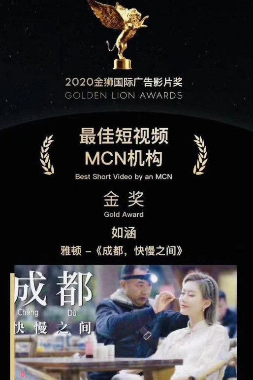 7月21日,2020金獅國際廣告影片獎頒獎盛典在上海舉行。在為期半年的征集評選之后,如涵的作品在眾多優(yōu)秀廣告作品中脫穎而出。