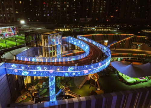 (2019年,夜空彩虹用星星燈為廣州富力海珠城組成圣誕天幕燈簾)