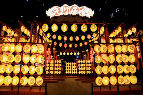(由夜空彩虹打造的龍湖重慶時(shí)代天街“夢回大唐” 西廊照裝置)