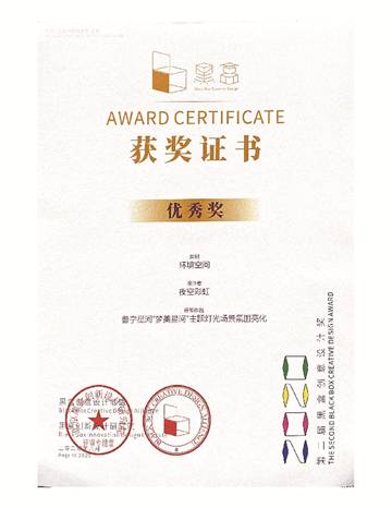 (圖為夜空彩虹BCDA黑盒創(chuàng)意設(shè)計(jì)獎(jiǎng)獲獎(jiǎng)獎(jiǎng)狀)