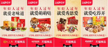 年輕消費(fèi)者參與到本次的營(yíng)銷活動(dòng)中,買到的不僅僅是產(chǎn)品,更是一種重找新年氛圍的快樂(lè)體驗(yàn)。天貓食品精準(zhǔn)觸碰目標(biāo)消費(fèi)者心中的“點(diǎn)”,引領(lǐng)年輕人購(gòu)置尖端年貨,掀起熱捧新年俗的潮流,抓住80后人群愛(ài)“玩”愛(ài)“個(gè)性”的特質(zhì),將微博、海報(bào)、視頻的玩趣新年味與年貨節(jié)入口相結(jié)合,直接轉(zhuǎn)化為訂單,大大縮短購(gòu)買轉(zhuǎn)化的中間流程。成功的新年?duì)I銷策劃將巨大的聲量與流量均轉(zhuǎn)化為實(shí)實(shí)在在的銷量盈利,可見(jiàn),天貓對(duì)節(jié)日營(yíng)銷的互聯(lián)網(wǎng)創(chuàng)新玩法把握始終走在同行業(yè)的前端。