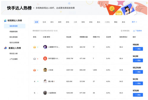 為滿(mǎn)足廣告主不同的營(yíng)銷(xiāo)需求,快接單新上線(xiàn)“達(dá)人熱榜”功能,支持基于數(shù)據(jù)的達(dá)人推薦,如直播帶貨實(shí)力榜、直播人氣主播榜、視頻傳播表現(xiàn)榜、性?xún)r(jià)比表現(xiàn)榜等;未來(lái),還將在打包玩法等細(xì)節(jié)上推出特色榜單。廣告主可根據(jù)推廣需求,高效選擇達(dá)人并發(fā)布推廣訂單,通過(guò)定制商業(yè)短視頻或直播形式,實(shí)現(xiàn)多種推廣目標(biāo),滿(mǎn)足個(gè)性化營(yíng)銷(xiāo)訴求。