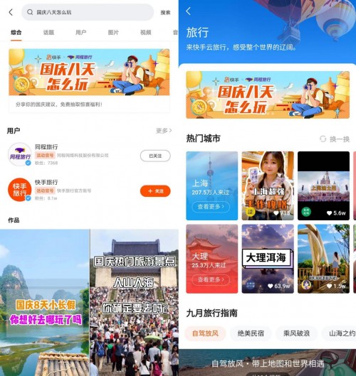 快手達人各顯神通,多流量入口助力同程旅行點燃黃金周