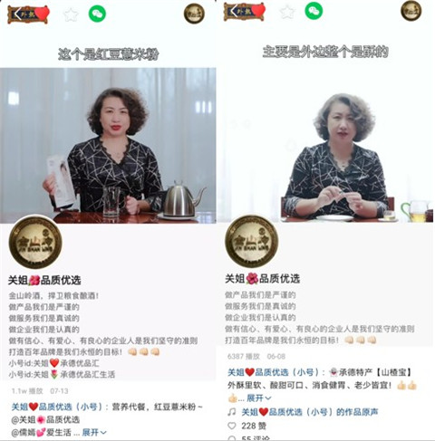 由于年齡原因,關姐在快手主要吸引了不少大齡粉絲的關注。相仿的年紀讓她更了解粉絲需求的同時,也能與粉絲找到更多共同話題。“除了賣貨,我在直播中還會和大家互動,一起聊天唱歌,還挺開心的。”在相對輕松的帶貨氛圍下,關姐與粉絲間產(chǎn)生了信任感,并積累了較強的粉絲粘性。與此同時,關姐對于產(chǎn)品品質(zhì)的嚴格把控,也讓她獲得了較高的轉化率和復購率。