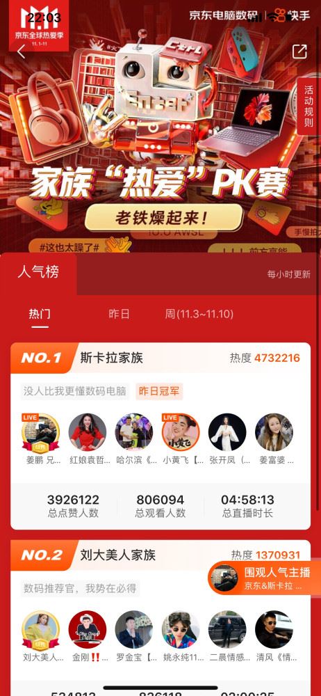 為了助力京東電腦數(shù)碼打造潮流出圈之勢(shì),快手磁力引擎在內(nèi)容、用戶、流量等方面強(qiáng)力加持,提供了一套完整且閉環(huán)的解決方案。預(yù)熱蓄力期,#我是熱愛(ài)推薦官#品牌挑戰(zhàn)賽先聲奪人,快手達(dá)人接力種草,引發(fā)老鐵“自來(lái)水”帶話題發(fā)布作品,視頻播放量達(dá)近4000萬(wàn)。高潮爆發(fā)期,斯卡拉家族與劉大美人家族在直播間PK帶貨,直播總點(diǎn)贊人數(shù)達(dá)1747萬(wàn)+。這是快手磁力引擎首次為單一品類(lèi)營(yíng)銷(xiāo)賦能,新奇多樣的玩法不僅帶動(dòng)京東電腦數(shù)碼提升GMV,更實(shí)現(xiàn)了品牌傳播的“余味悠長(zhǎng)”。