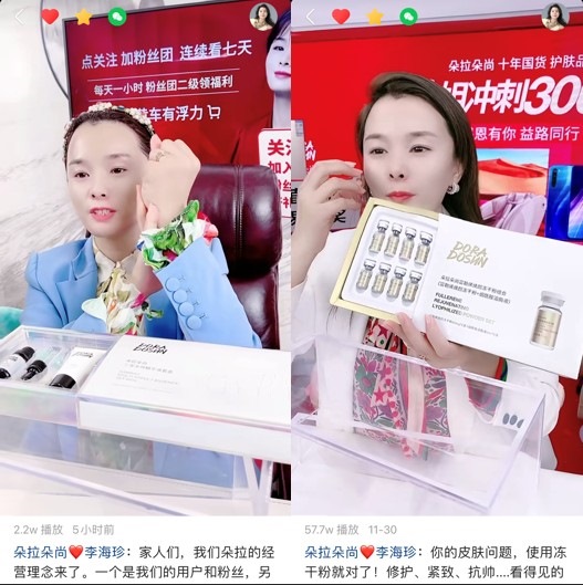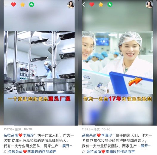 今年4月,為了進(jìn)一步拓展品牌營(yíng)銷的渠道,借助“短視頻+直播”的東風(fēng),展示國(guó)貨護(hù)膚品的競(jìng)爭(zhēng)力,李海珍團(tuán)隊(duì)帶領(lǐng)朵拉朵尚入駐快手,用5個(gè)月時(shí)間先后運(yùn)營(yíng)起4個(gè)官方品牌賬號(hào)?!拔蚁M淅渖斜桓嗳丝吹?,這是我選擇快手的重要原因。”