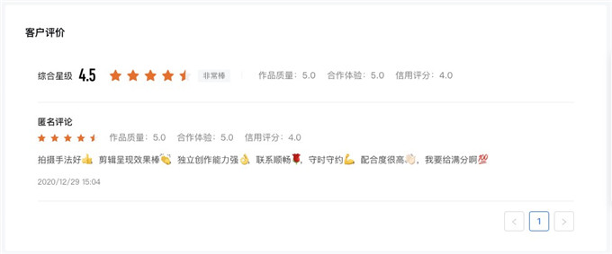 在本次磁力聚星全面上線的達人評價體系中,客戶每單合作后都可以從作品質(zhì)量、合作體驗、信用評價三個維度為合作達人進行星級評分,每個維度滿分5星。