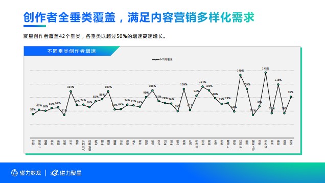 《報(bào)告》顯示,2020年1月到11月,聚星創(chuàng)作者數(shù)量上漲達(dá)181.1%,不同粉絲量級(jí)的創(chuàng)作者數(shù)量均有增長(zhǎng),并覆蓋娛樂(lè)、動(dòng)漫、才藝、政務(wù)等42個(gè)垂類領(lǐng)域,讓不同行業(yè)品牌都能找到目標(biāo)圈層,有更豐富的排列組合方式進(jìn)行選擇,滿足多樣化的營(yíng)銷需求。