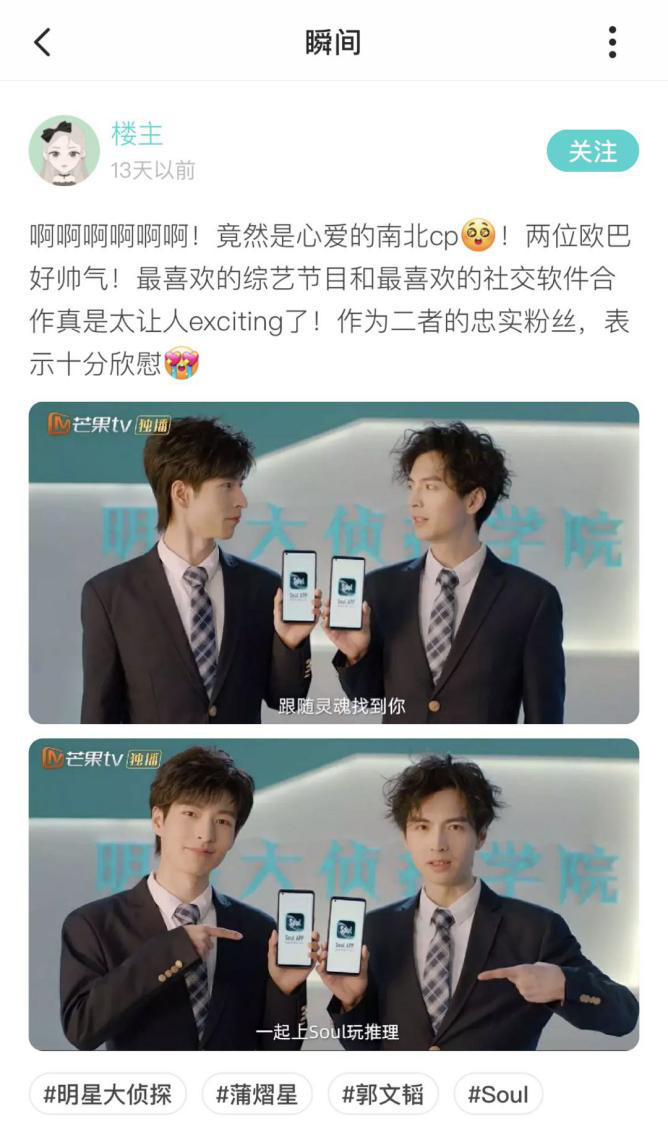 Soul APP聯(lián)手綜藝《明星大偵探》,激活Z世代文化勢能