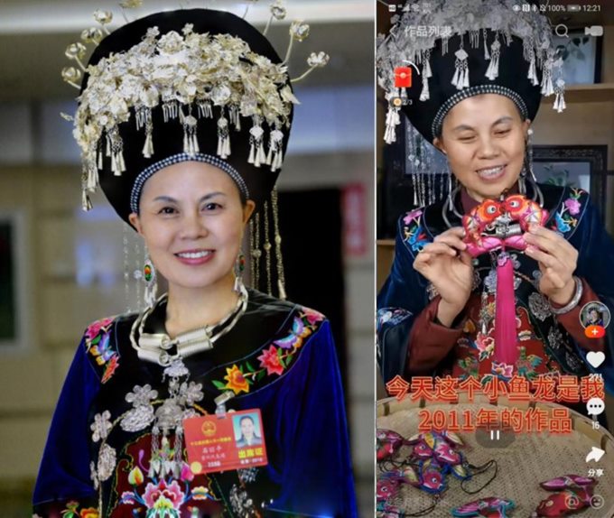 石麗平(@松桃苗繡傳承人石麗平)曾作為全國脫貧攻堅(jiān)獎(jiǎng)獲獎(jiǎng)代表登上今年央視春晚舞臺(tái)。身為松桃苗繡第七代傳承人,石麗平自2016年以來在易地扶貧搬遷點(diǎn)開設(shè)了100個(gè)扶貧工坊,帶動(dòng)4000多名留守婦女居家就業(yè),幫助300多名貧困人口脫貧。石麗平不僅培養(yǎng)了一大批繡娘,更通過快手推廣當(dāng)?shù)匚幕c產(chǎn)品,帶富一方群眾。