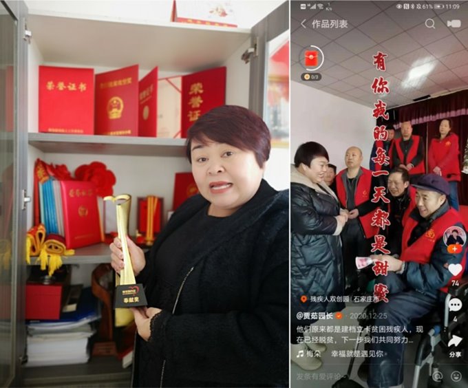 據(jù)悉,賈茹(@賈茹園長)是河北省行唐縣雙創(chuàng)園園長和創(chuàng)建者,她的員工均為全縣基層殘障人士,園區(qū)僅投入使用的一年,就安置了殘障人士和家屬161人就業(yè),其中托養(yǎng)建檔立卡貧困殘障人士87人。為了讓人們充分了解殘障貧困人士的生存現(xiàn)狀,并更好推廣園區(qū)產(chǎn)品,賈茹帶領(lǐng)員工開啟“短視頻+直播”模式,為他們?cè)黾恿耸杖?,過上有尊嚴(yán)的生活。