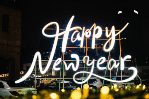 慶春店則選擇了以“HAPPY NEW YEAR”為主題的燈飾發(fā)光裝置。
