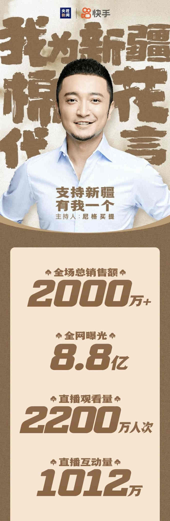 央視總臺主持人尼格買提聯(lián)合明星景甜、于朦朧、張含韻共同為新疆棉花帶貨。直播在28日晚上20點央視新聞快手直播間正式開啟,快手小店官方賬號進行轉播。當晚還有mimi童裝、徐小米、貝姐、真姐、火云鞋、四海運動等多位快手電商主播帶貨新疆棉花相關商品。