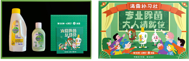 除了主題短片和系列海報(bào)外,這次天貓歡聚日滴露還聯(lián)合了中國(guó)美術(shù)學(xué)院共同設(shè)計(jì)的了一款“專(zhuān)業(yè)除菌大人補(bǔ)習(xí)社”限定禮盒作為促銷(xiāo)禮贈(zèng)。禮盒外觀是手繪風(fēng)格的除菌教室,視覺(jué)化呈現(xiàn)了“滴露補(bǔ)習(xí)社“的補(bǔ)課場(chǎng)景,仿佛是主題短片中王建國(guó)進(jìn)入補(bǔ)習(xí)社之后的延續(xù)。