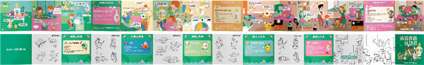 既然是補(bǔ)習(xí)社,當(dāng)然要有課本——禮盒內(nèi)除了滴露產(chǎn)品的迷你裝之外, 還配贈(zèng)了一本“滴露總動(dòng)員”除菌故事繪本,繪本正面是手繪連環(huán)畫(huà),生動(dòng)講述了一個(gè)除菌小故事。繪本背面是常見(jiàn)細(xì)菌和病毒的介紹,還設(shè)置了DIY填色區(qū),消費(fèi)者在動(dòng)手涂鴉的同時(shí)能加深對(duì)除菌知識(shí)的印象。