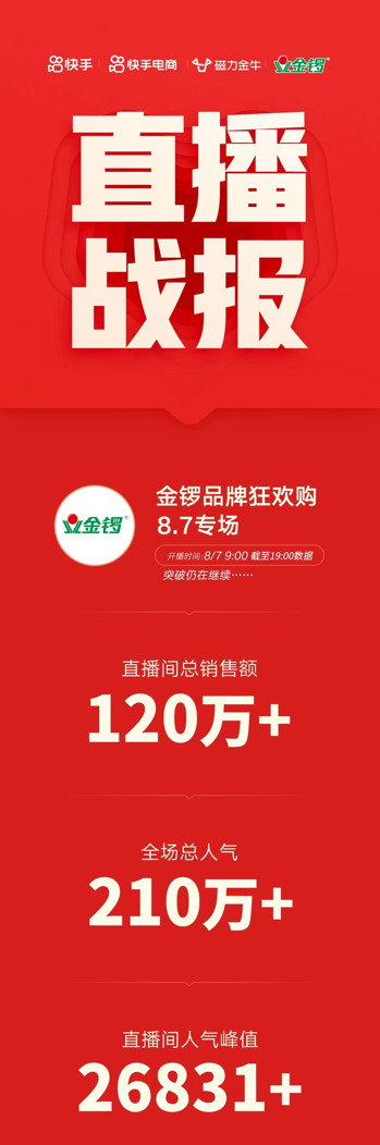 食品企業(yè)在快手的破繭成蝶之路,快手磁力金牛強勢助力金鑼自播GMV日破120W