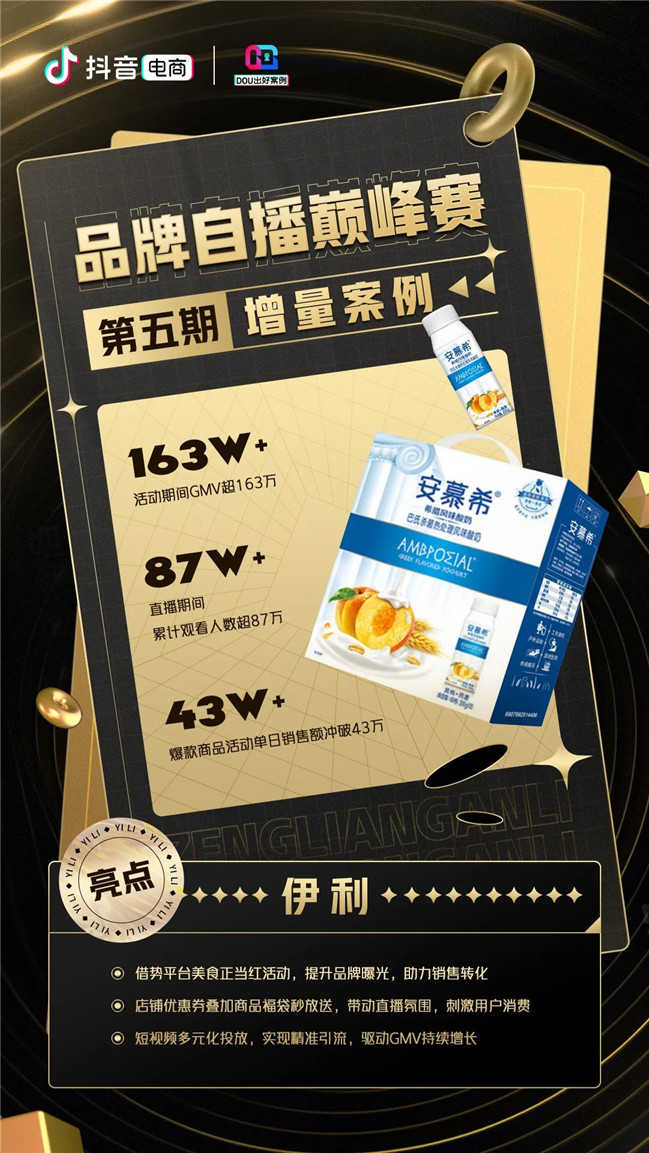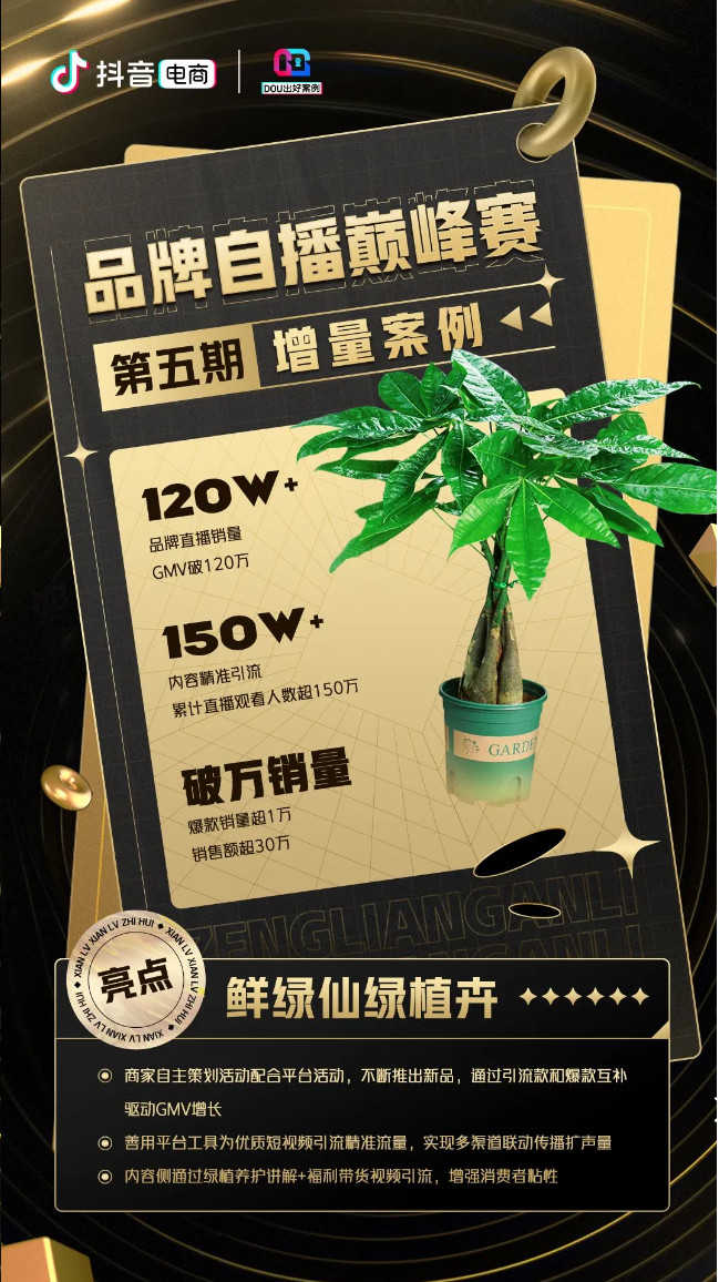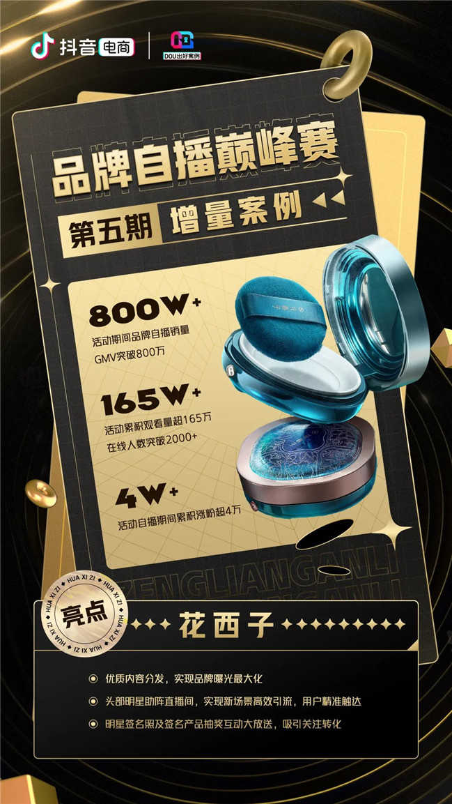 自播是品牌銷售的基本盤,更是自主掌握在抖音電商核心經(jīng)營能力的關(guān)鍵。抖音電商品牌自播巔峰賽,以官方直播培訓營、巔峰賽、任務(wù)激勵等特色激勵玩法帶動商家提升自播運營能力。