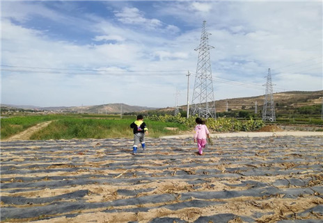 (孩子們?cè)谔镆爸斜寂埽闹軡M是芹菜)