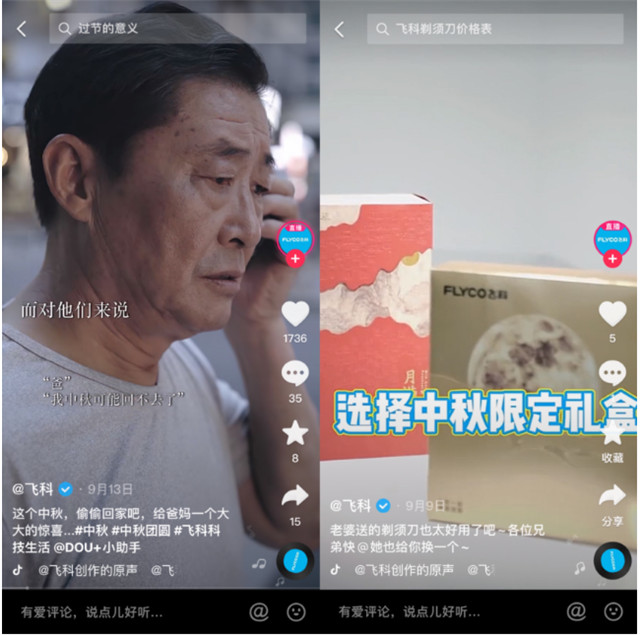 除產(chǎn)品包裝升級之外,飛科也優(yōu)化營銷素材。與之前主要發(fā)布產(chǎn)品功能講解的相關(guān)內(nèi)容不同,為了適配禮品特性,飛科特意在抖音平臺的品牌官方賬號上發(fā)布了符合送禮場景的創(chuàng)意內(nèi)容,并結(jié)合抖音平臺用戶興趣偏好,增加營銷素材的潮酷屬性。