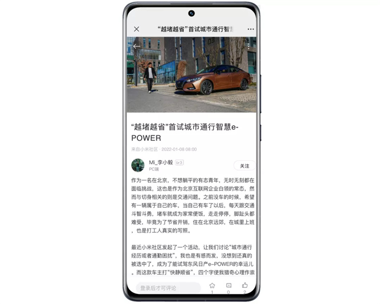 一方面,小米社區(qū)同步發(fā)起活動「回顧聚合帖」,囊括米粉熱議痛點(diǎn)和真實(shí)體驗(yàn),并繼續(xù)邀請米粉參與互動,實(shí)現(xiàn)長尾擴(kuò)散,延伸e-POWER多維城市通行優(yōu)勢。