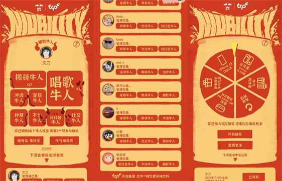 與此同時,紅牛品牌新年小程序【紅牛喝彩真牛人】也正式上線,小程序利用朋友圈社交的基本盤,在保持整體傳播一致性的同時,增添全新玩法,喚好友集“牛人標(biāo)簽”,刺激消費(fèi)者主動分享小程序增加裂變,抽獎社交兩不誤。