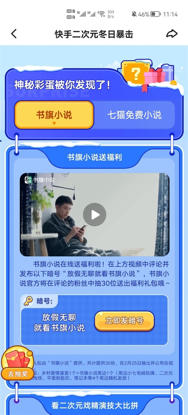首先,“冬日暴擊”活動(dòng)實(shí)現(xiàn)了玩法大升級(jí),在活動(dòng)頁面中為用戶開辟諸多小會(huì)場(chǎng),不僅打造“春節(jié)檔大放送”欄目,集合多部二次元短片,還聯(lián)合創(chuàng)作者“花式寵粉”,在活動(dòng)作品評(píng)論區(qū)為粉絲送出專屬福利。