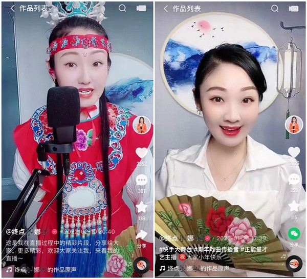 生在豫劇之鄉(xiāng)河南的傅娜娜曾經(jīng)是一名劇團演員,而她在快手上還有另一個更被大家熟知的身份——一個擁有百萬粉絲的戲曲才藝主播“終點娜”,她在自己的主頁介紹中寫著:“奉獻愛心、志愿同行,弘揚戲曲文化,傳遞社會正能量?!倍潭?1個字,道出了她入駐快手平臺的初心與使命。