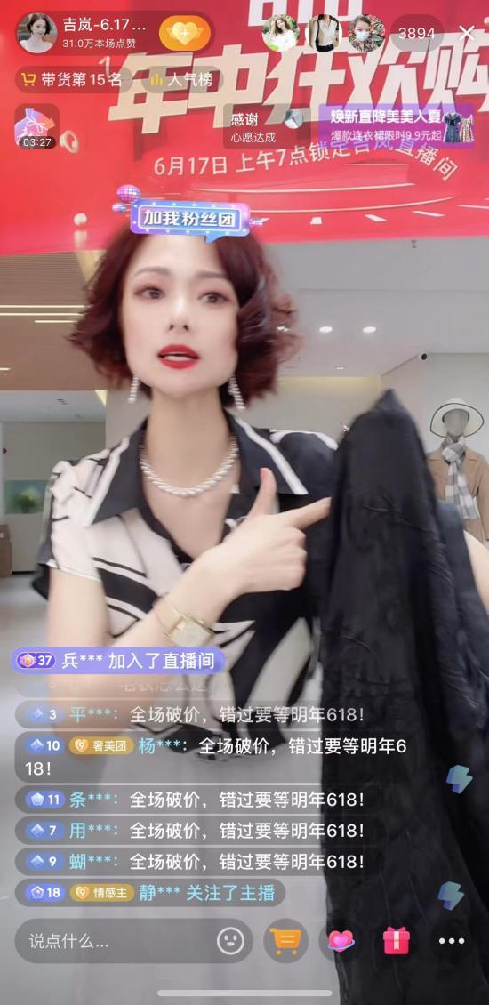 嘉興市濮院輕紡城網(wǎng)絡(luò)科技有限公司則根據(jù)粉絲標(biāo)簽,直播間觀看人群畫像,對(duì)產(chǎn)業(yè)帶商家吉嵐活動(dòng)當(dāng)天的直播間貨盤進(jìn)行調(diào)整,在保證標(biāo)簽穩(wěn)定的前提下引進(jìn)部分設(shè)計(jì)師品牌女裝,以及男裝和童裝對(duì)貨盤進(jìn)行補(bǔ)充,放大購(gòu)買力和貨盤總價(jià)值。同時(shí),吉嵐采用福利+爆款+新品的組合,實(shí)現(xiàn)粉絲轉(zhuǎn)化和停留,最終6月17日GMV超500萬(wàn)。