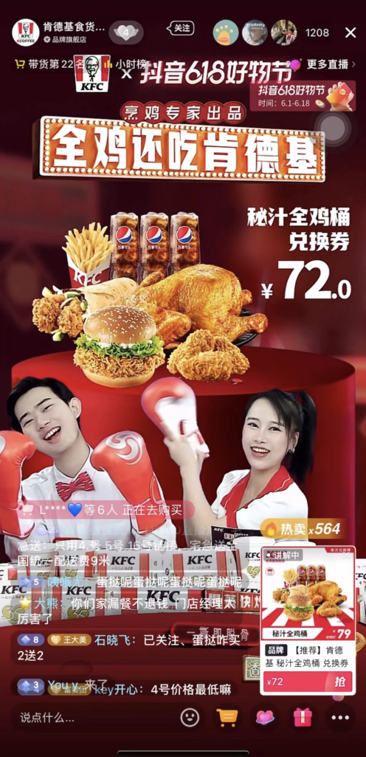 上海石磐廣告有限公司在服務(wù)KFC的過程中,同樣采用了PK互動(dòng)的形式。具體來(lái)說(shuō),石磐廣告通過人貨場(chǎng)組合助力,為KFC打造了一場(chǎng)“年中沖擊波”,主播以戰(zhàn)隊(duì)隊(duì)長(zhǎng)的形式進(jìn)行PK帶貨,促進(jìn)銷量,并通過花式獎(jiǎng)懲內(nèi)容,讓直播間更具趣味看點(diǎn),引起用戶停留和嗨購(gòu)。最終,石磐廣告618期間GMV增長(zhǎng)61.11%,UV增長(zhǎng)26.3%,點(diǎn)擊成交轉(zhuǎn)化率增長(zhǎng)43.08%。石磐廣告復(fù)盤了其中的方法論,“貨組是賣貨的基石,營(yíng)銷是曝光的基礎(chǔ),氛圍是流量的突破口,節(jié)奏是轉(zhuǎn)化率的核心?!?br>