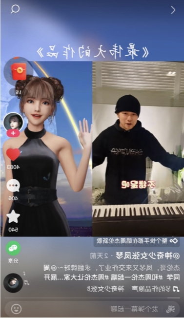 快手虛擬偶像@神奇少女張鳳琴也參與了#和周杰倫一起唱#,作為一名有靈氣有梗的偶像歌手虛擬人形象,她的歌聲和周杰倫的鋼琴相當和諧,就連高音都格外絲滑。