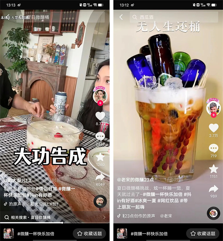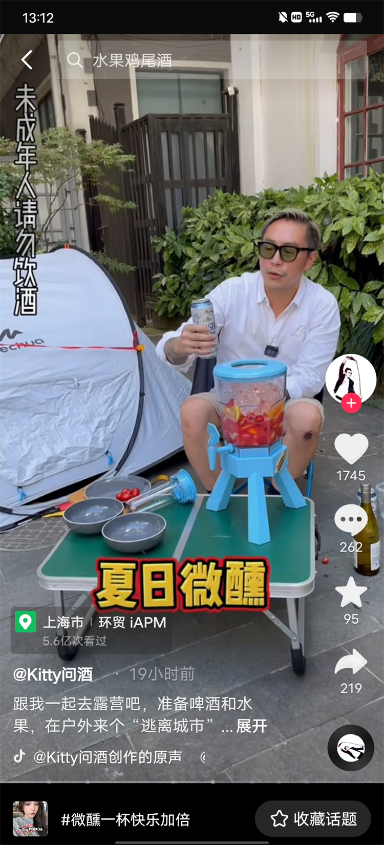 年輕人是抖音的主力軍,這個(gè)年齡段的人群喜歡追求新鮮事物,注重儀式感,這一點(diǎn)和低度酒的目標(biāo)消費(fèi)人群是一致的,根據(jù)這一結(jié)論,抖音通過熱點(diǎn)話題、達(dá)人內(nèi)容矩陣、挑戰(zhàn)賽等站內(nèi)一系列特色玩法,幫助低度酒品牌商家打造出一個(gè)興趣內(nèi)容場,吸引目標(biāo)用戶關(guān)注,進(jìn)而塑造低度酒消費(fèi)心智。