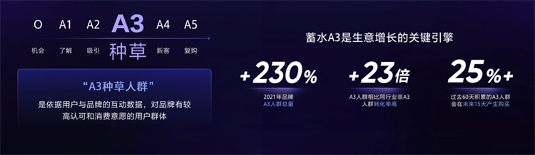 蓄水階段,A3人群是生意增長(zhǎng)的關(guān)鍵引擎。巨量引擎O-5A人群劃分中,A3人群中的“種草”人群,即,最容易轉(zhuǎn)化的人群。種草人群是用戶(hù)與品牌互動(dòng)數(shù)據(jù)中,對(duì)品牌有較高認(rèn)可和消費(fèi)意愿的用戶(hù)群體。