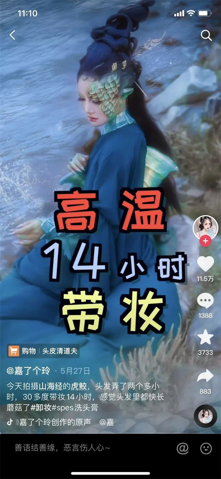 營(yíng)銷(xiāo)需要結(jié)合場(chǎng)景,在適合的場(chǎng)景下,產(chǎn)品就是好的內(nèi)容。比如,Spes詩(shī)裴絲根據(jù)巨量星圖數(shù)據(jù),找到了一位專(zhuān)門(mén)演繹《山海經(jīng)》妝容的達(dá)人,因?yàn)椤渡胶=?jīng)》的人物造型特別復(fù)雜,但達(dá)人通常要化特效妝,且拍攝過(guò)程很長(zhǎng),這樣一天下來(lái),頭發(fā)十分油,這時(shí)這位達(dá)人推薦洗發(fā)產(chǎn)品,就十分契合。