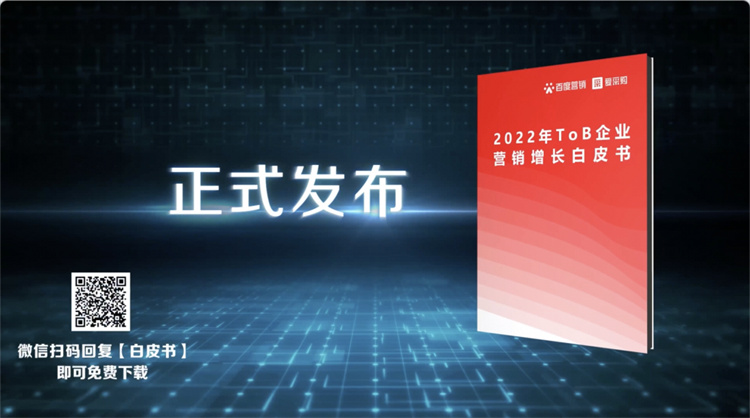 隨后,由愛(ài)采購(gòu)與百度營(yíng)銷(xiāo)研究院聯(lián)合推出的《2022年ToB企業(yè)營(yíng)銷(xiāo)增長(zhǎng)白皮書(shū)》重磅發(fā)布,該白皮書(shū)對(duì)ToB企業(yè)年度發(fā)展數(shù)據(jù)及行業(yè)增長(zhǎng)趨勢(shì)進(jìn)行分析及解讀,為中小企業(yè)的營(yíng)銷(xiāo)發(fā)展提供了具有數(shù)據(jù)支撐的“解題思路”??稍谖⑿艃?nèi)搜索【百度愛(ài)采購(gòu)】公眾號(hào),關(guān)注后回復(fù)“白皮書(shū)”下載完整版。
